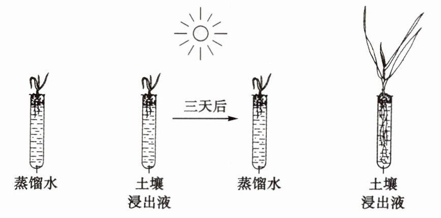 13. 康康将两株生长状况基本相同的玉米幼苗,分别放在盛有等量的蒸馏水和土壤浸出液的试管中培养(如图4 - 3 - 3所示),这是为了探究玉米幼苗的生长需要【
