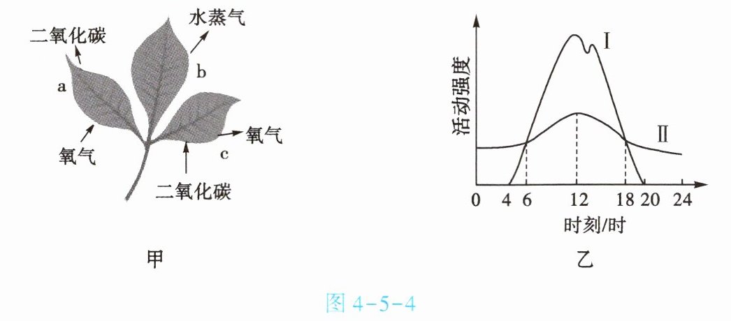 12. 为帮助农户提高某经济作物的品质和产量,研究小组进行了相关实验研究。分析该经济作物的叶片所进行的某些生理活动以及在晴朗的夏季24小时内呼吸作用和光合作用强度的变化曲线(如图4-5-4所示),回答下列问题。