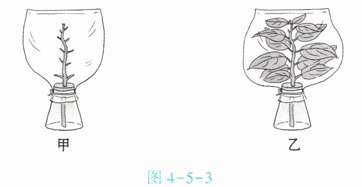 11. 生物学兴趣小组设计并制作了一套研究植物散失水分的实验装置(如图4-5-3所示),并将实验装置放在阳光下照射两小时。回答下列问题。