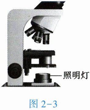 3. 随着技术的发展,显微镜的功能更加完善,操作更加便捷。如图2-3所示的显微镜,在原反光镜的位置换装上照明灯,这样方便观察者完成【