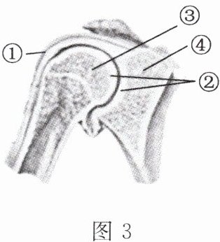 (2)训练过度可能会导致运动员手臂关节脱位。据图3可知,关节脱位是[ ](填序号)从关节窝中滑脱造成的,可导致[②]______磨损,降低关节的灵活度。