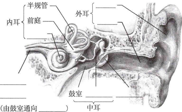 1.鼓膜 耳蜗 听神经 听觉 2.噪声 鼓膜 张口 堵耳 3.嗅细胞 味细胞 皮肤