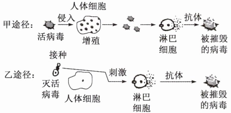 18. 下图是人体对某种病毒感染产生免疫的两种途径示意图,请据图分析回答下列问题。