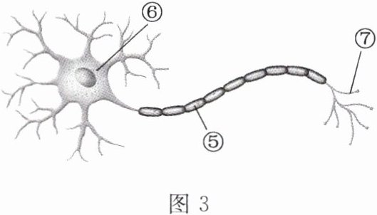 (1)神经元是神经系统的基本单位,包括图 3 中的[⑥]胞体和[⑤] 突起两部分。