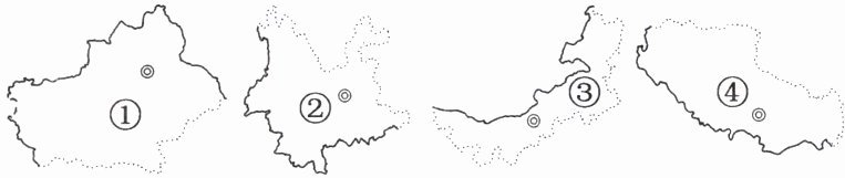 读我国四个省级行政区轮廓图,完成 3~5 题。