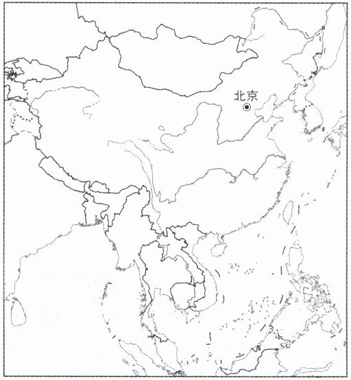 为了提高同学们绘制中国地图的准确性,在绘制我国海陆轮廓前,老师引导同学们对我国国界线进行了临摹。读下图,完成2~3题。