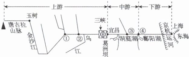 长江是我国最长的河流,也是我国东西交通的大动脉。长江干支流蕴藏着丰富的水能资源。读长江干支流示意图,完成 6~8 题。