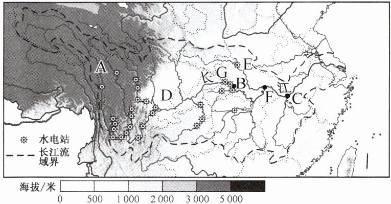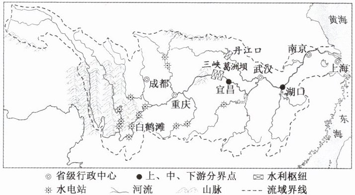 (城市)注入长江。(3)长江流域水能资源丰富,可利用水能资源占到全国的一半以上,有“