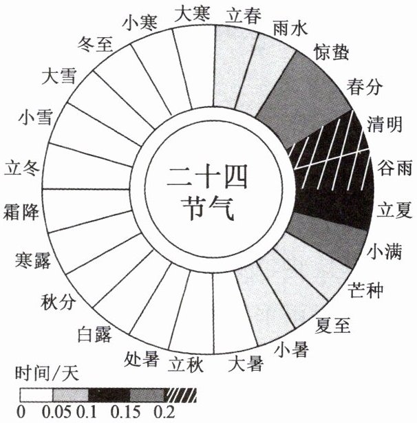 根据全国2000多个国家级气象站各节气的扬沙日数统计数据可知,春季是扬沙日数最多的季节,该季节的扬沙日数是夏秋季节的8倍之多。读各节气我国平均扬沙日数统计图,完成4~6题。