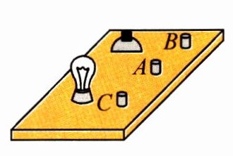 2. 某电路中有一个封闭的电路盒(如图所示),面板上有A、B、C三个接线柱及灯泡、电铃各一个。为了探究盒内电路结构,小明做了多次实验,实验结果记录如下表。根据实验情况,请你在虚线框内画出电路盒内的电路图。