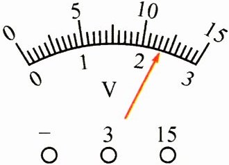 5. (知识点2)如图所示的电压表,若选$0\sim3V$的量程,读数是