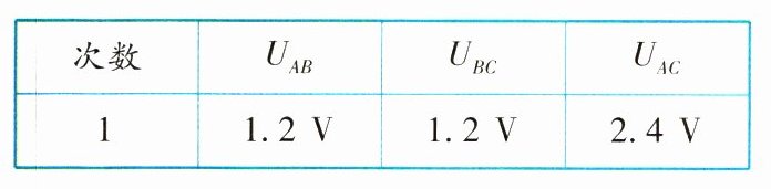 (3) 由表中的数据可以看出:$ U_{AC} = U_{AB} + U_{BC} $,因此可以得出:串联电路两端的总电压等于各用电器两端的电压之和。