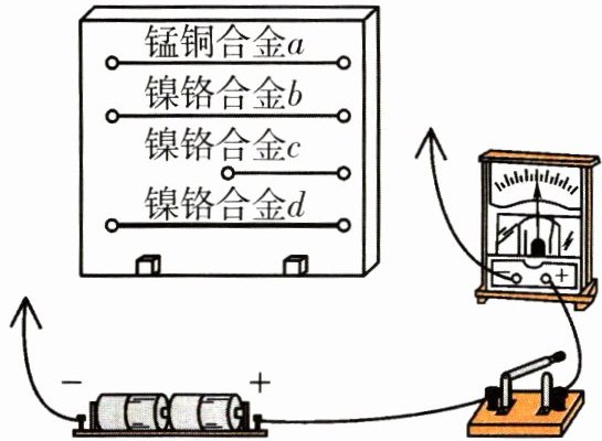 2. 如图所示是探究影响导体电阻大小因素的实验装置图,实验中分别把a、b、c、d四根导线接入电路,其中导线a、b、d长度相同,a、b、c粗细相同,b、d粗细不同。