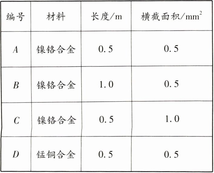 (2)选用编号为A、B的两根电阻丝进行实验,可以探究导体电阻大小与