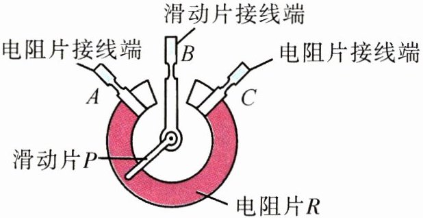 3. (知识点3)一种变阻器结构如图所示,若顺时针旋转滑动片$P$(