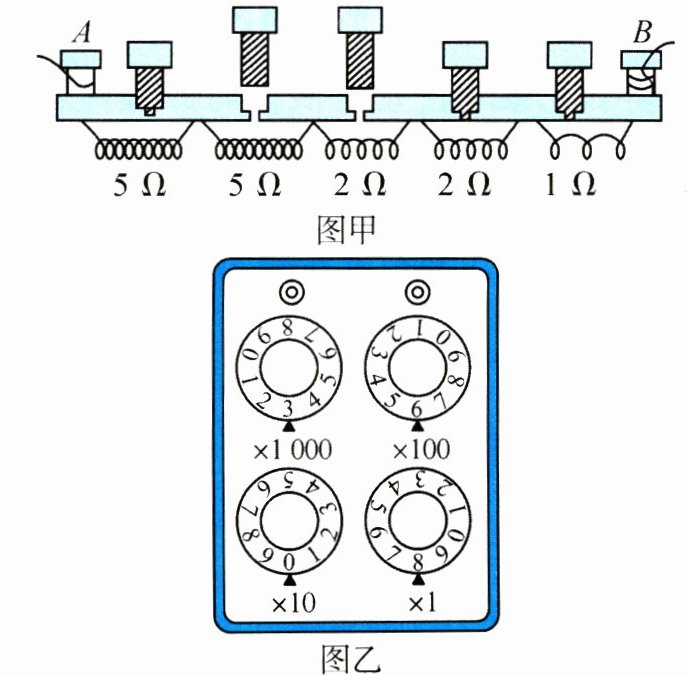 2. (能力点2)如图甲所示是插入式电阻箱的结构示意图,图中$A$、$B$两个接线柱之间的电阻值是