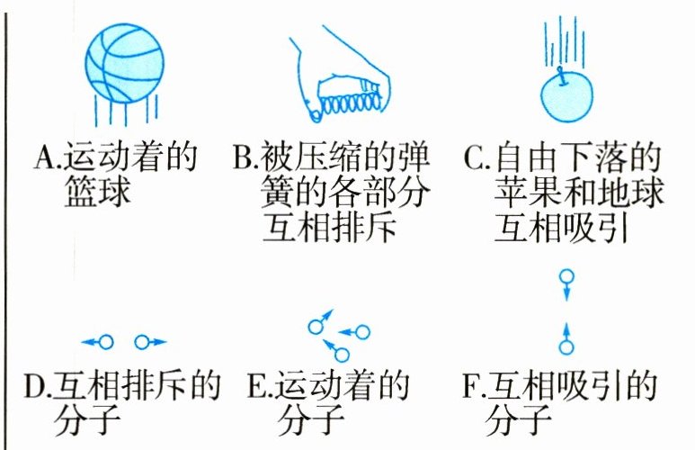 (3)用运动的篮球具有动能类比运动的分子具有分子动能;用被压缩的弹簧各部分互相排斥类比互相排斥的分子;用自由下落的苹果和地球互相吸引类比互相吸引的分子。