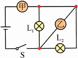 1. (2019·达州中考·专题 1)如图所示,甲、乙均为理想电表,当开关 S 闭合后灯 $ L_1 $、$ L_2 $ 都能发光,下列说法中正确的是(