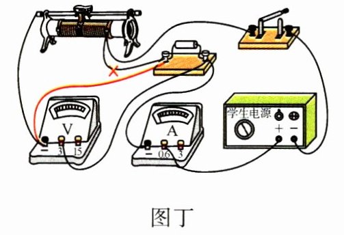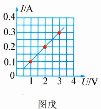 (4) 电阻;图丙中,横坐标每格代表$0.5V$,纵坐标每格代表$0.05A$,在坐标系中分别描出$(1,0.1)$、$(2,0.2)$、$(3,0.3)$三点,然后用平滑的曲线连接