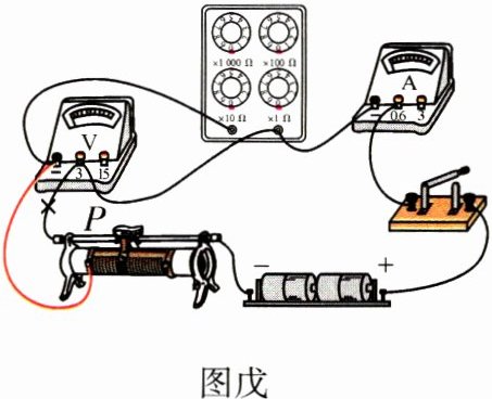 (1)图中电阻箱被短路,应该将电阻箱串联在电路中,电压表并联在电路中,如图戊所示。