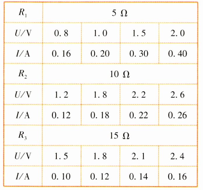 流之比$\frac{U}{I}$= $\frac{0.8V}{0.16A}$= $\frac{1.0V}{0.20A}$= $\frac{1.5V}{0.30A}$三