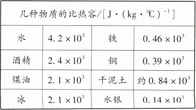 1. (眉山中考·知识点1)表中有几种物质的比热容,小张同学根据提供的数据得出了四个结论,其中正确的是(
