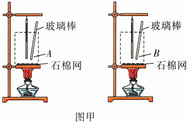 (填“液体升高的温度”或“加热时间”)比较。(3) 根据实验数据绘制的温度与时间的关系图像如图乙所示,分析图像可知:质量相等的 $A$ 和 $B$ 两种液体,在升高相同温度时,