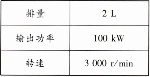 (2)功率为100 kW,物理意义就是发动机1s 内对外做功100 kJ,即1×10⁵J;排量为2 L,一共4缸,所以单缸排量为2 L4=0.5 L。