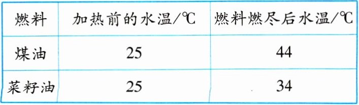 (2)分析得出:煤油和菜籽油两种燃料中,热值较大的是