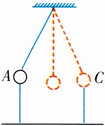8. (2021·舟山模拟·知识点2)如图所示,一根细绳上端固定,下端系一金属小球,制成一个单摆。现将小球拉到离地面50cm高的位置A后静止释放,小球摆到右侧最高点C,C点离地面高度为40cm,随后小球由C点再次摆到左侧最高点D(D点未标出),则D点离地面的高度可能是(