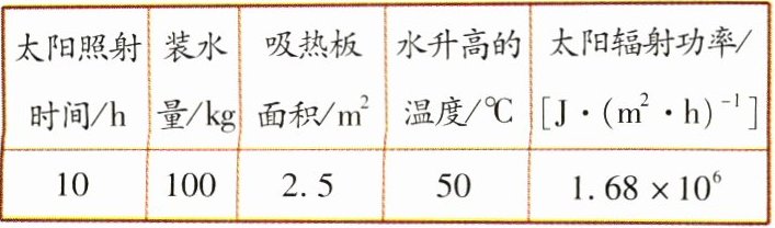 (2) $10 h$太阳能热水器吸收的太阳能(总能量)$E_{总} = PSt = 1.68 × 10^6 J/(m^2 \cdot h) × 2.5 m^2 × 10 h = 4.2 × 10^7 J$。
