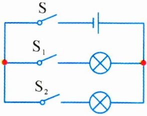 (3)为了探究开关$S_1$的作用,在其他两个开关闭合的情况下,通过操作开关$S_1,$同时观察支路上两个灯泡的亮暗情况来判断开关$S_1$的作用。
