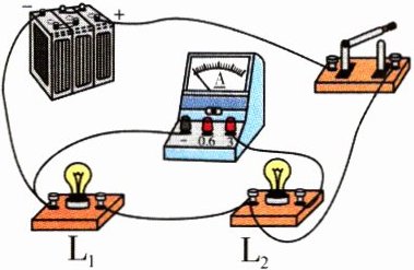 B [解析]由题图可知,两灯泡并联,电流表串联在灯L₂所在支路中,电流表测通过灯L₂的电流。