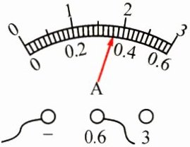 B [解析]电流表使用“0~0.6A”的量程时,按照“0~3A”的量程读成了2.4A,正确读数应为2.4A的$\frac{1}{5}$,即0.48A 。