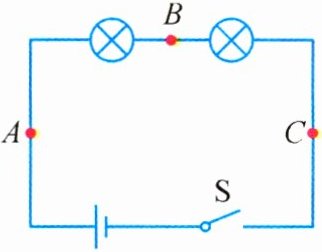 2. 在“探究串联电路中电流大小的关系”实验中,某同学用电流表分别测出如图中 $ A $、$ B $、$ C $ 三处的电流大小,下列说法正确的是(