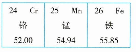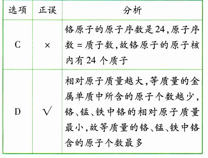 D.等质量的铬、锰、铁中,含原子个数最多的是铬