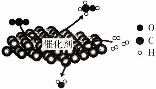。(3) 碳转化:一定条件下,可将二氧化碳在催化剂表面转化成某种有机清洁燃料,其反应原理如图所示。该反应的化学方程式为