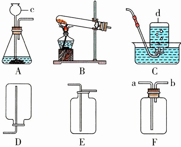 氧气不易溶于水且不与水反应,密度比空气的大,故收集氧气既可以选用排水法[装置 C(d 为集气瓶)或装置 F,其中装置 F 中气体从 b 端通入],又可以选用向上排空气法(装置 E 或装置 F,其中装置 F 中气体从 a 端通入)