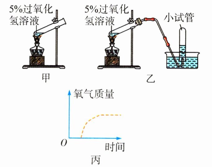 ②取用相同质量的新制5%的过氧化氢溶液,若图丙虚线表示加热分解制取氧气的曲线,请你在该图中用实线画出利用催化剂分解制取氧气的大致曲线(假定两种方法过氧化氢均完全分解)。