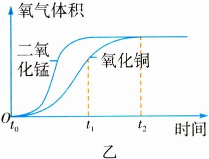 (2)通过题图乙能得出的结论是二氧化锰对过氧化氢溶液分解的催化效果比氧化铜好;催化剂不能改变生成氧气的量。