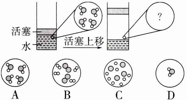 D 【解析】分子之间的间隔大小决定物质的状态,当物质由液态变为气态时,分子之间的间隔变大,但分子组成不变,故符合此条件的只有D项。
