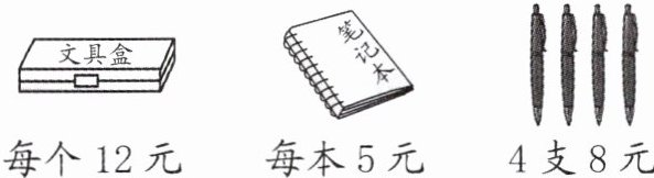 1. 买1个文具盒和5本笔记本,一共需要多少元?