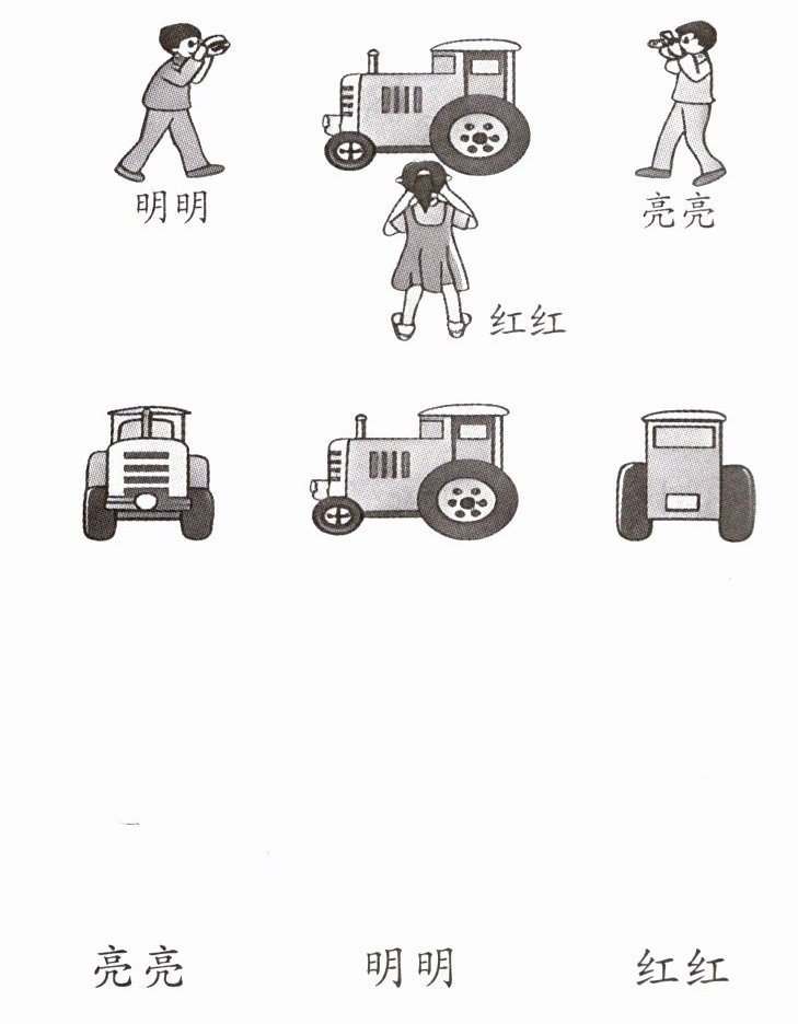 红红-第一张图,明明-第二张图,亮亮-第三张图