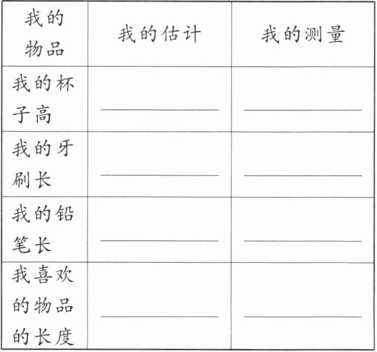 |我喜欢的物品的长度|5厘米(答案不唯一)|4厘米(答案不唯一)|