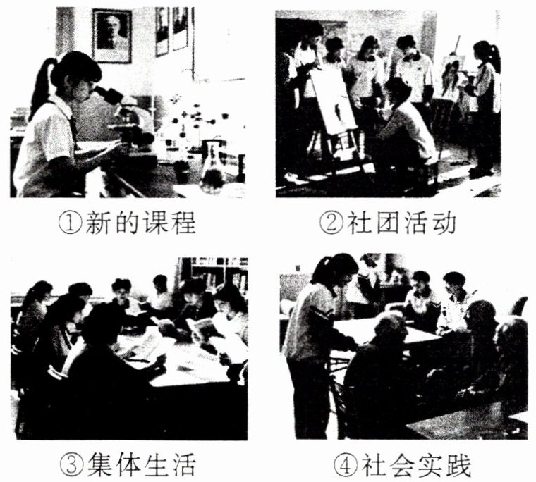 (1)①带领我们探索新的知识领域②给我们提供更多培养兴趣的平台③涵养品格,提升自我 ④为我们打开认识社会的大门