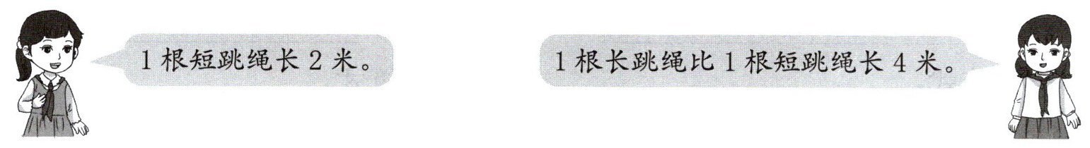 1 根短跳绳长$2$米,1 根长跳绳比 1 根短跳绳长$4$米,所以长跳绳的长度为: