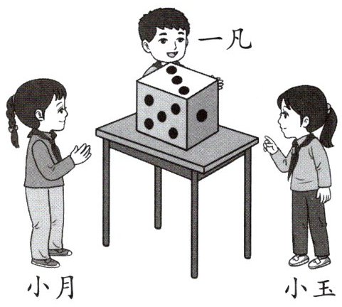 小正方体6个面分别是,其中的对面是,的对面是,的对面是。每个小朋友在自己的位置都只能看到两个面。一凡看到的是哪两个面?