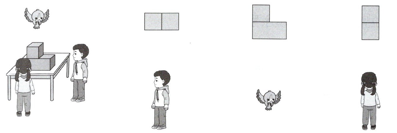 2. 下面右边的三幅图分别是谁看到的?连一连。