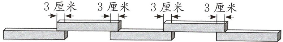 3. 5根3分米长的木棍像下图这样连接起来,总长度是多少厘米?
