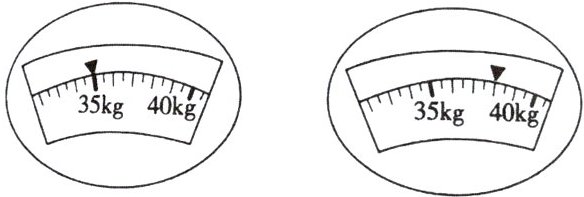 4. 小林想知道自己家小狗的体重,但是小狗不配合站在体重秤上。于是他先称了自己一次,再抱着小狗站在秤上称了一次。根据下图显示,你能算出小狗的体重吗?